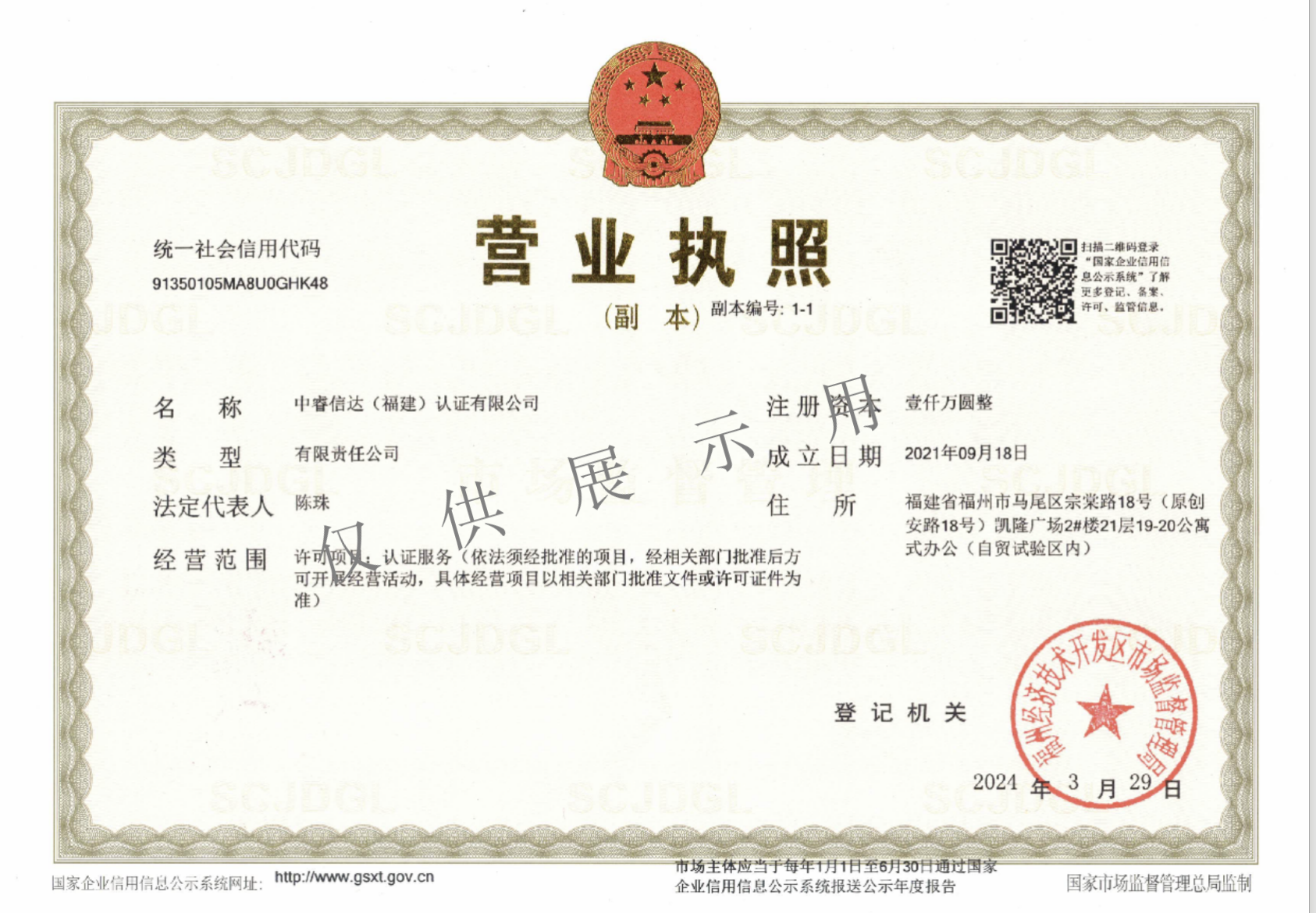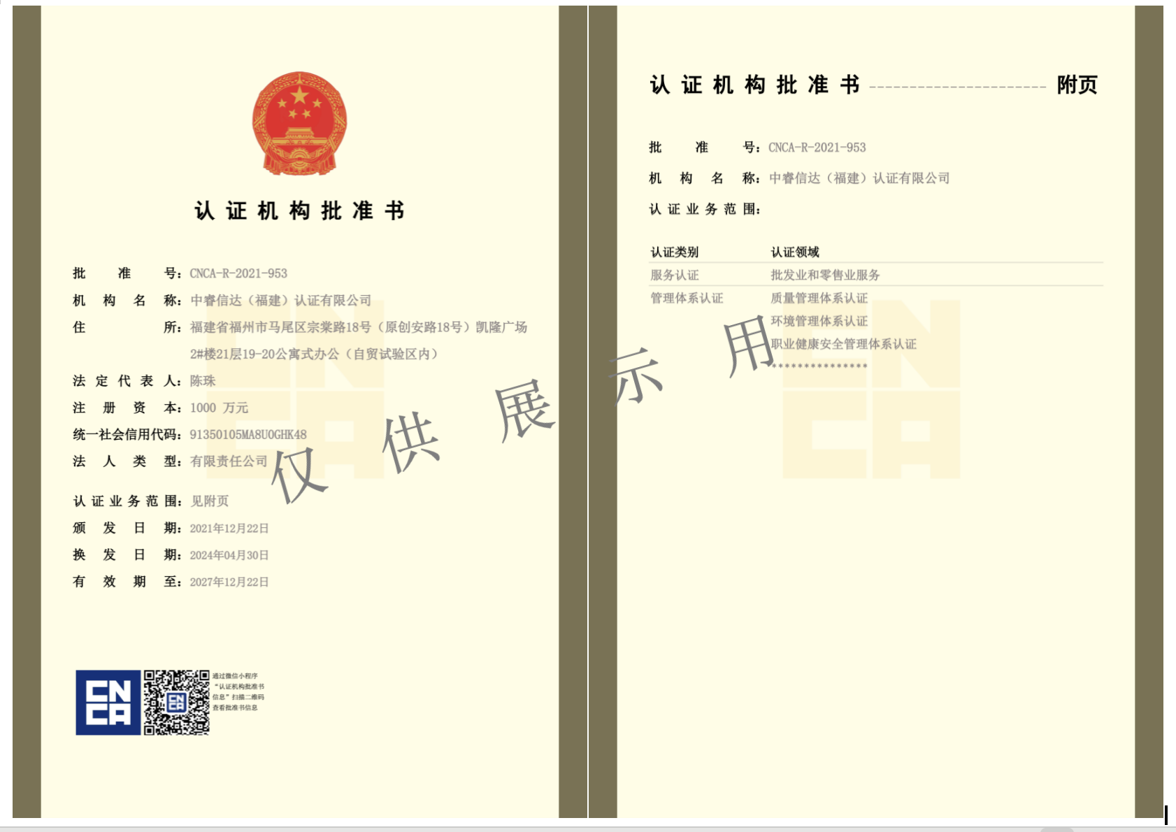 ZRXD/GK01 认证业务范围
